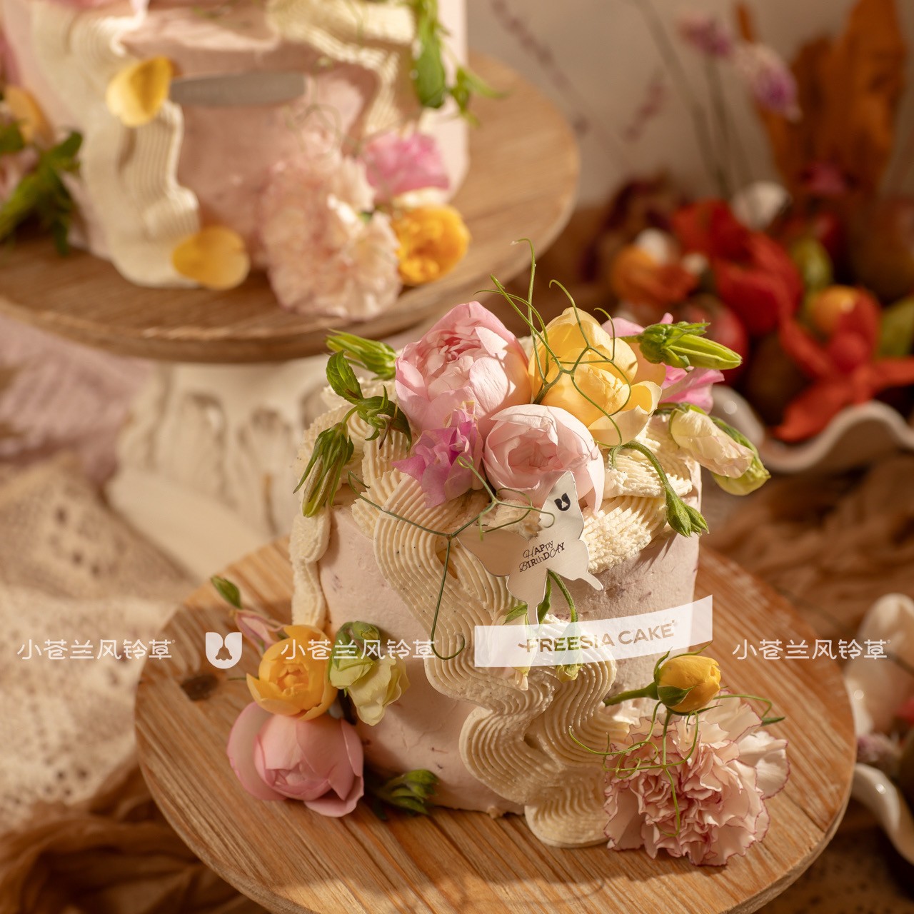 ⚠️个别花材根据美国当地花材略有调整,整体风格不变,请谨慎下单。装饰鲜花不得食用,插入蛋糕的鲜花有保护处理过,食用蛋糕前请摘掉。介意者,请选择水果或坚果款蛋糕。